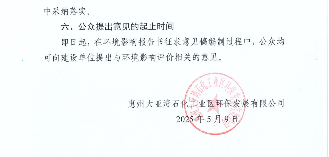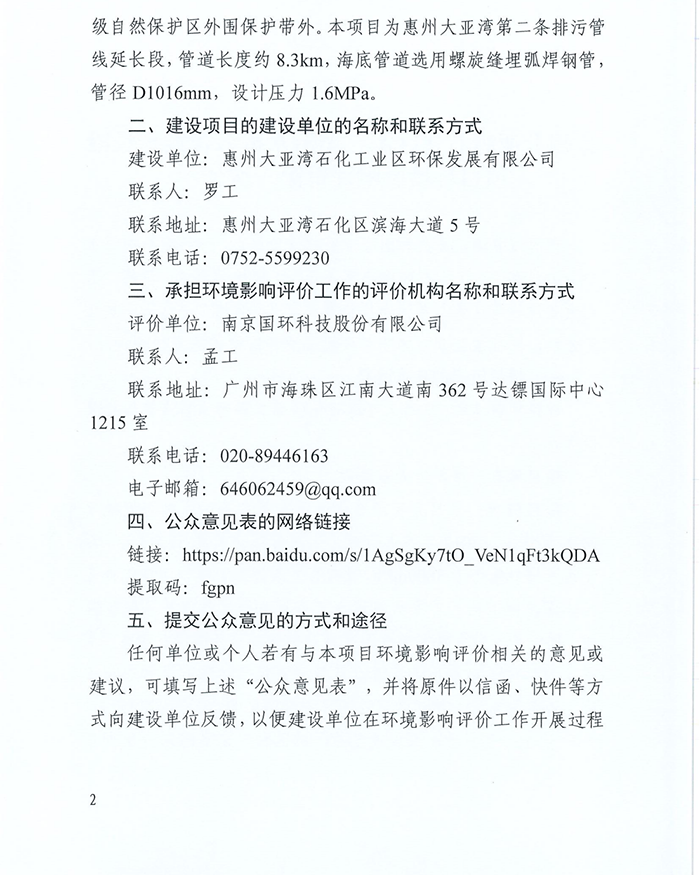 惠州大亞灣石化區(qū)第二條污水排海管線延長段項(xiàng)目環(huán)境影響評(píng)價(jià)第一次公示